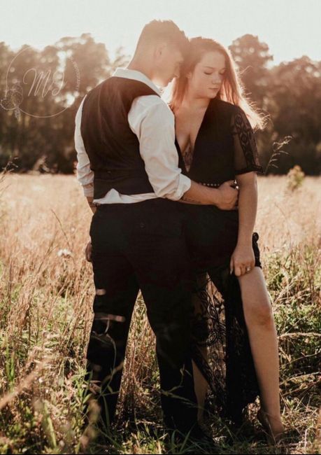I am wearing this black romper/dress for my engagement photos. We live in Maine and are doing our engagement photos outdoors in early October once the leaves have changed. Need inspo for my fiancé’s outfit please!! I want him to coordinate but not be...