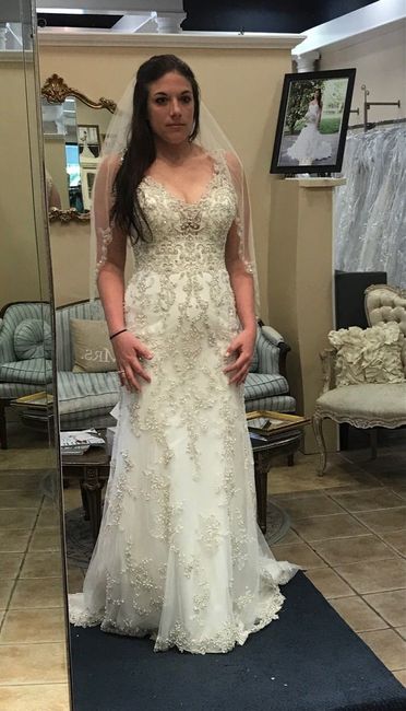 My dress is finally in (ordered in September 2016, just came in last week!) and I tried it on today for the first time! It's a bit snug, and I'm self conscious about my belly pooch/arms, so I definitely need to hit the gym the next few months, but it...