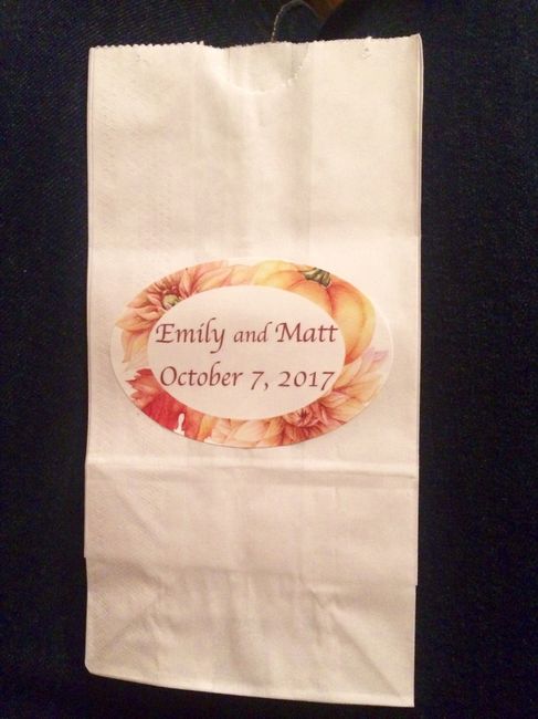 We decided to have our popcorn bar during the cocktail hour so our guests have something to occupy them while we take our photos. I designed stickers that match our invites to put on the bags. Do you think the popcorn can double as favors?