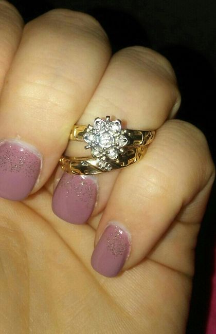 My FH proposed in Paris during a trip in January, and he had planned a custom ring, but unfortunately it would not have been ready by the time we left for trip. So in the meantime he got a small .10 carat ring just because he didn't want to NOT...