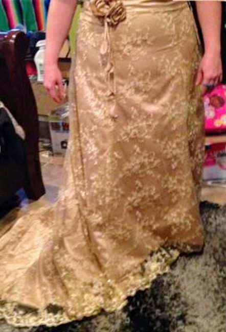 I didn't think I was going to make one of these posts. I'm not search for THE dress, just a dress that looks decent on me, since I'm buying used. I thought I wanted an ivory dress, but I keep coming back to this gold one. What do you think? This is...