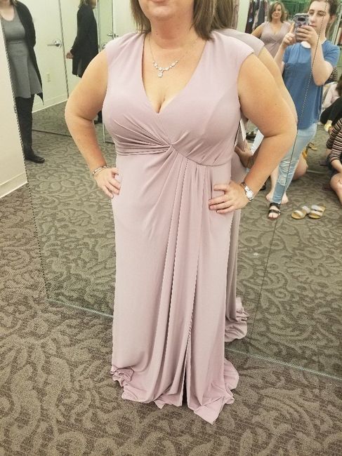 Which dress do you prefer for the MOB? I love the floor length dress, but it is more revealing.. or the short dress that is more covering?