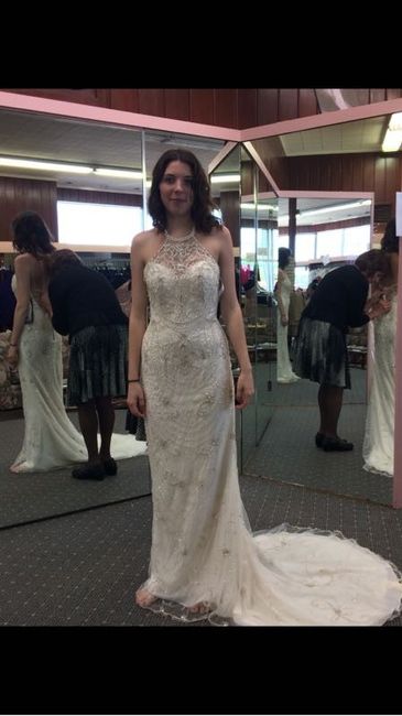 I bought my dress in June and am anxiously waiting for it to come in. I had gone into this dated hole in the wall dress place just to look and lone and behold, I found my dress on the 3rd try. It was way big on me so they clipped me in to show how it...