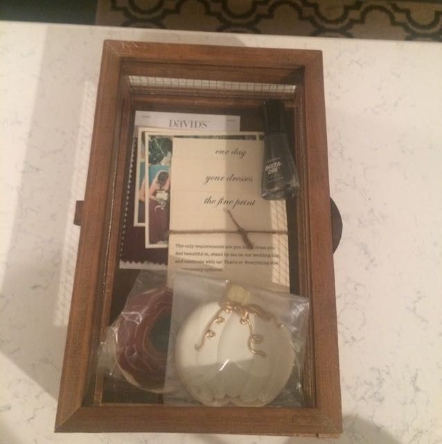 I love the idea of "proposing" to your bridal party with a "Bridesmaid Box" Has anyone asked their Bridesmaids with a box? I would love to see a pic and details. I am going to ask my girls next month.
