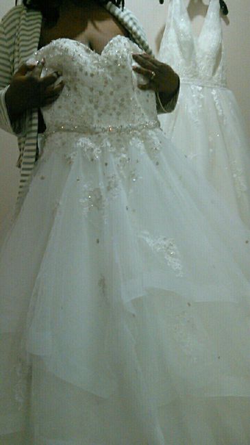 I bought this dress and its absolutely beautiful and sparkly lol but i havent seen any real brides in this dress anywhere. So ladies if youve tried it on or bought it drop a pic. I would love to see!!