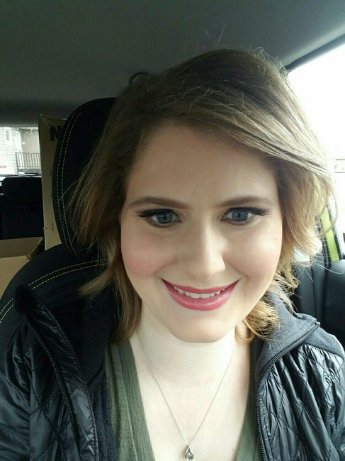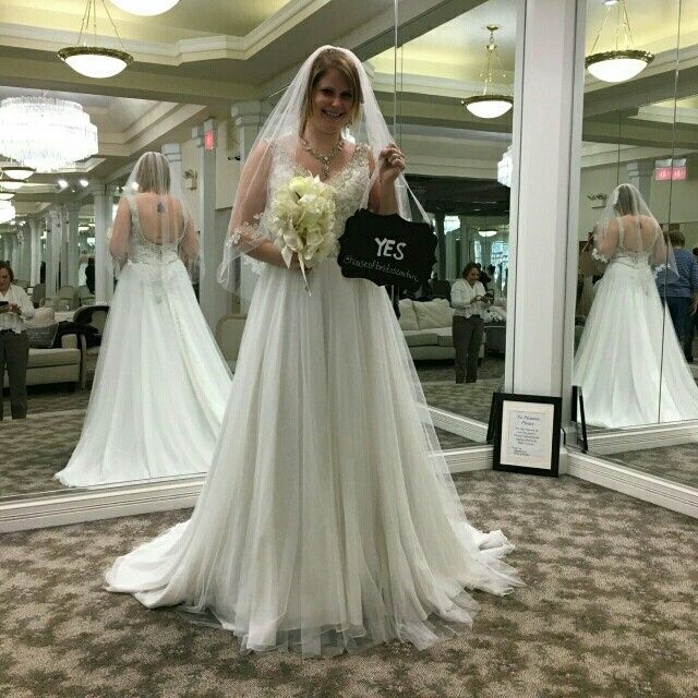 I went dress shopping today with my grandma, FMIL, one of my bridesmaids, and my MOH. I wore my necklace and earrings that were my grandma's and mom's that I wanted to match with my dress. We pulled close 7 dresses and the first dress I tried on...