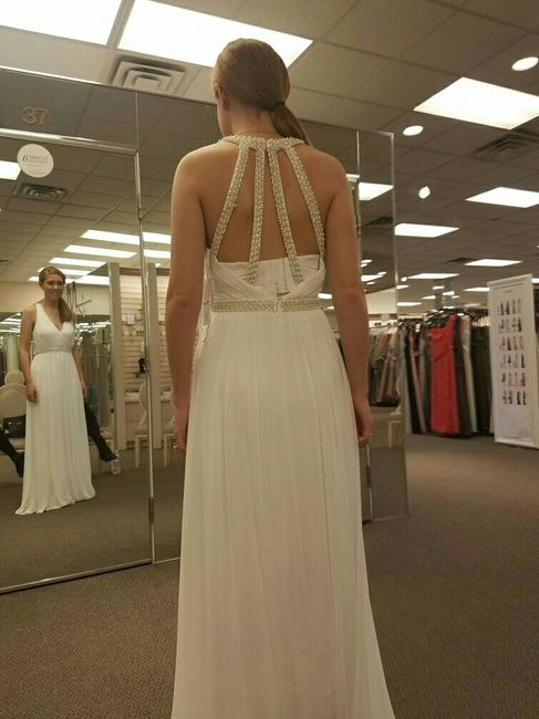 Today was my first day looking at wedding dresses. I brought my fiance's kids with me to help me out. The third dress I tried on was THE ONE. And better yet, ladies, it was $80.00. More pictures in the comments