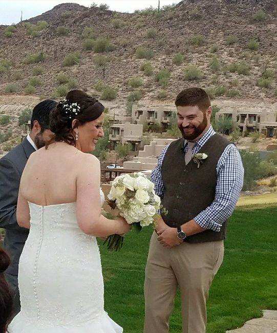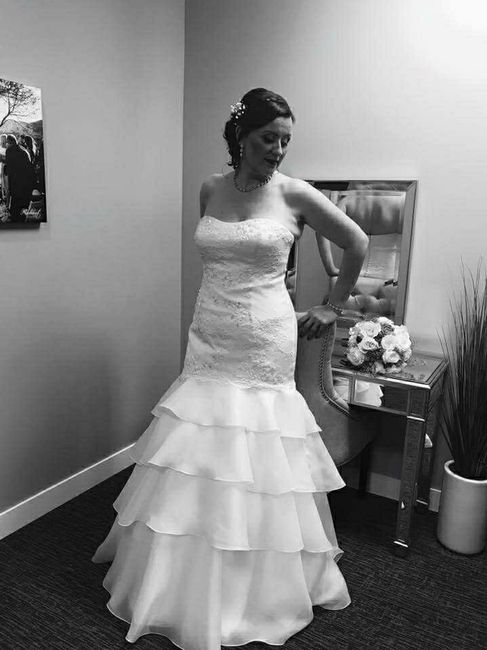 I'd like to see some dresses on real brides! I've kinda felt discouraged about my dress since I bought it because the lighting/pose I was in was weird in photos plus I just see photos of models in the dresses. Please post some pics of your dresses