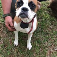 3308 days agoFH surprised me with an 8 month old fawn colored boxer puppy. She is cute as can be - but we need a name for her. Help us pick one please!! The pic attached is from her old owners, that's a perimeter collar, we have her in a harness now.