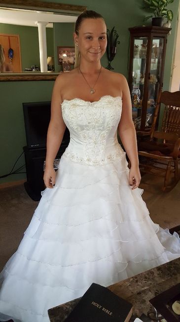 I am picking my gown up from the seamstress soon and fought through a wave of dress regret. Back to loving the uniqueness of my wedding dress. I hope it fits! I LOVE seeing everyone's gowns, so drop a pic! It always amazes me how different they are....