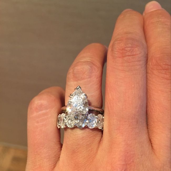 I would like to see everyone's stacked wedding rings. I tried on my wedding band the other day and noticed it looked better on top on my E-ring rather than on the bottom of it. But I know its supposed to go under the E-ring and some mentioned to me...