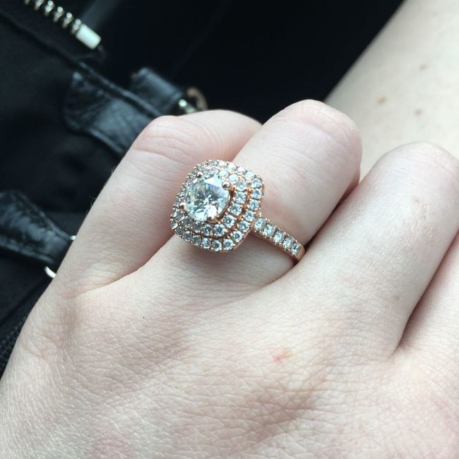 A couple weeks after my fiancé proposed I went to a jewelers with my best friend to get our rings cleaned. When we got our rings back the jeweler notice a stone was missing from my halo, he went to check the machine and it was there. I had them reset...