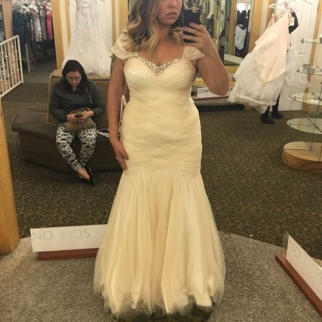 Found my dress after having to find another. Had the final fitting today. We added the cap sleeves and it made me love my dress even more!! I'm not one to be about the traditional ivory/white dresses. You can't tell in the picture but it's a...
