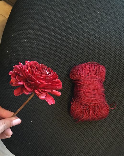 I just finished up dyeing the sola flowers for my bouquet! I'm super happy with the way my dark red/wine/whatever turned out. The picture is a VERY rough mock up done with what I plan to include and the flowers that have already dried. Just had to...
