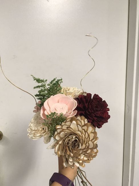 I'm all but finished! I really enjoyed this project and almost wish I was having bridesmaids so I could do more. I think post wedding I might make these as gifts/for home decor! I really disliked working with the dried green filler, but I didn't see...