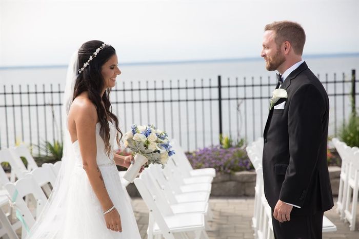 Anyone else get a great shot of your grooms reaction to seeing you? Here is mine! My husband was just so smiley lol