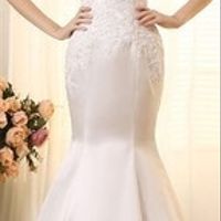3333 days agoSemi custom. Had the lace added to a satin sweetheart mermaid. So happy and it feels comfy! Didn't try the veil thid time but I have a cathedral length one.