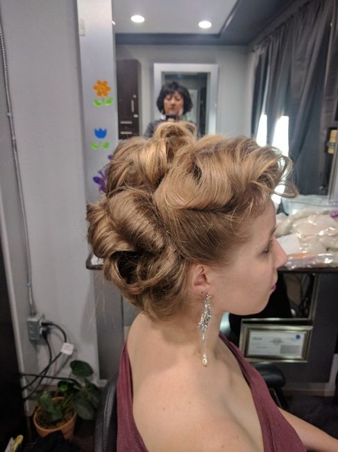 Shout out to my hair dresser!! She rocks!! I had a successful bridal hair trial this morning. I'm not doing a veil, probably just a hair clip or comb for a vintage style like this. More pics in the comments!