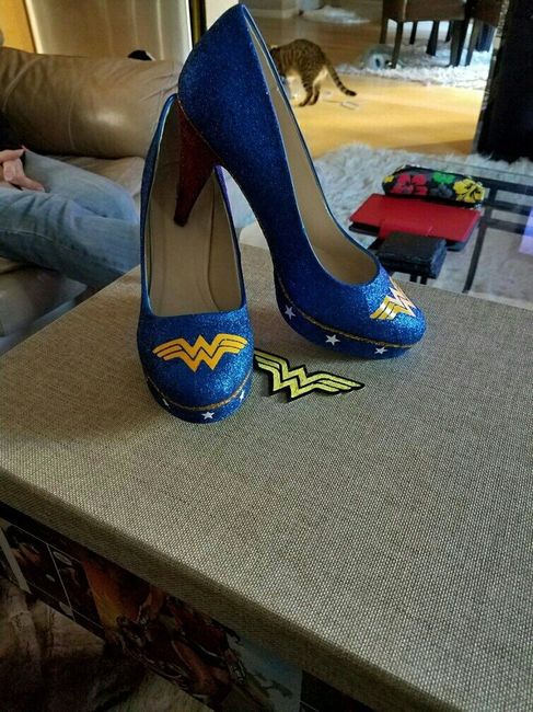 I know I posted about my dress today, but I also just got my wedding shoes in!!! They were my FH's idea since he'll be wearing a lot of batman. He wanted me to have a wonder woman Easter egg on me. They're also my something blue! Let's see yours!! ...