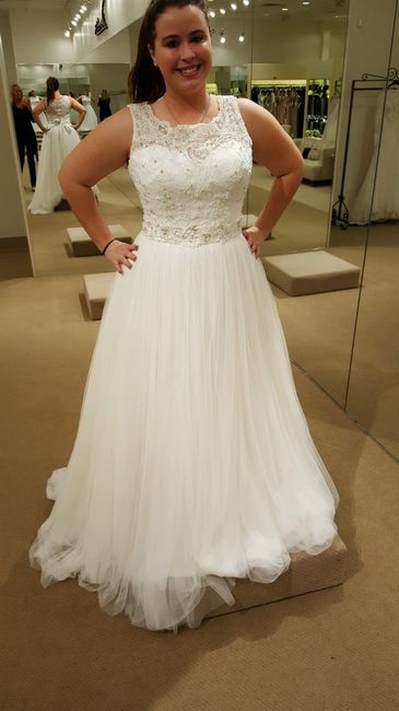 I went to several places dress shopping with my mom, future sister, and future mother in law. In those places I figured out what style I wanted. Well then I found a dress I loved.It just felt right as soon as I put it on. My mother didn't seem like...