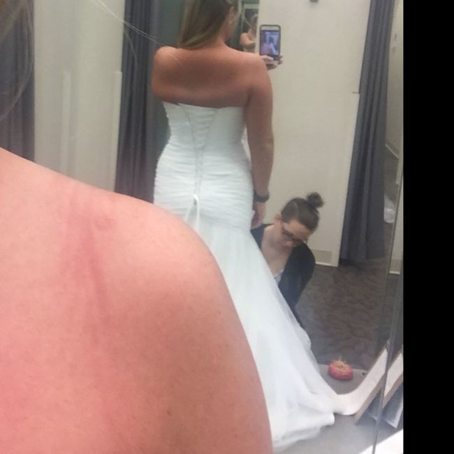 Okay so I am on my second dress. I hated my first. I'm in love with my second. But I picked it up from alterations yesterday (the wedding is in two weeks) and I just feel so big in it...I'm wearing my hair up and i am self conscious about my...
