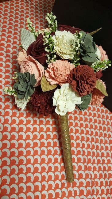 Hey ladies! I have to share more excitement! I finished my Sola Wood Flower bridal bouquet last night. Now all of the bouquets, boutiners and corsages are complete for the wedding. 78 more days to go!