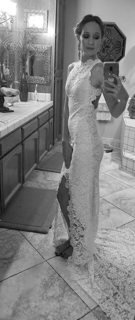 Hi friends! Here's a few pictures of me in my dress and I'm undecided if I should wear a veil or not. Any suggestions would be appreciated Side note, we're getting married in Maui on a grassy overlook. Thank you in advance Back, train pinned...