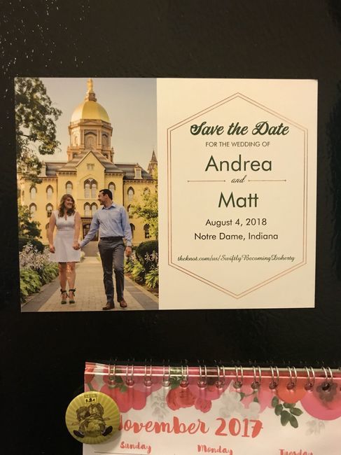 Our save the dates came and I love them! We can't wait to mail them! Is it too early? Our entire guest list (except for me and FH) are from OOT (like the closest person will be 2.5 hours away) so we were planning on sending them earlier. Originally...