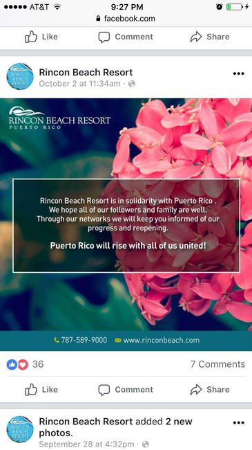 Hi I was wondering if anyone else has a wedding planned soon in Puerto Rico? My wedding date is Jan 27 and I cannot get ahold of the resort to see if everything is okay after the hurricane because the island has no power. I've tried e mailing also....