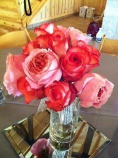 My style is somewhat dainty and simple. What are your thoughts on just a simple bouquet of matching pinks roses for centerpieces? The tables are lined up picnic tables with mint colored linens, and the vases will sit on a mirrored circle. I would...