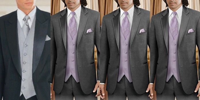 I need some opinions! First of all, my colors are lilac, plum, and silver. My BMs are wearing lilac dresses with bouquets that have a plum color in them. The future hubs refuses to wear purple, so I told him he can wear silver and the GMs will wear...