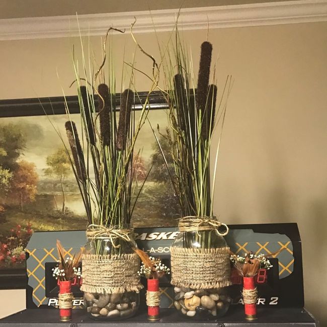 My FH is a tree Forman and he cut this tonight for our centerpieces. We have to treat them. Sand them. Then stain. Some work ahead of us. But I love how our centerpieces are special because he cut them. We are using quart sized mason jars with our...
