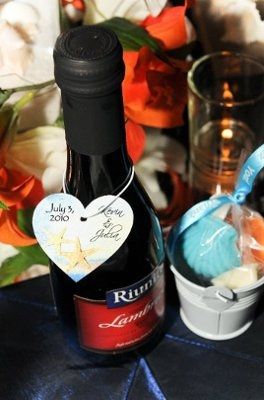 I'm giving these wine bottles away as gifts to the people that will be attending our rehearsal dinner. I've attached two pics, one that shows the black neck without the ribbon and one that has the ribbon around the neck of the bottle. My sister says...