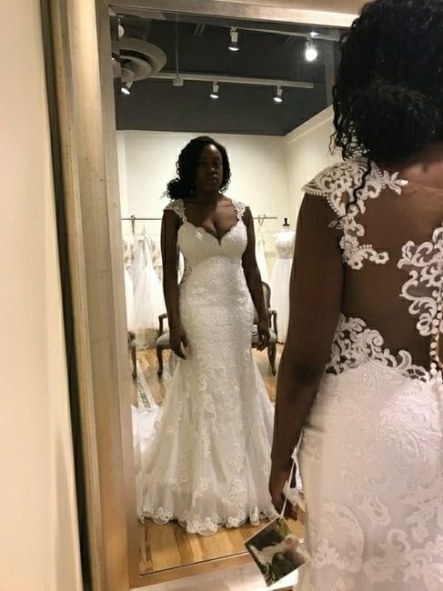 I just received my dress and I'm so excited ( even though you can't tell from my expression) to be marrying my soulmate. Lets see those dresses. Still looking for jewelry but working on it. Back of dress in comments.