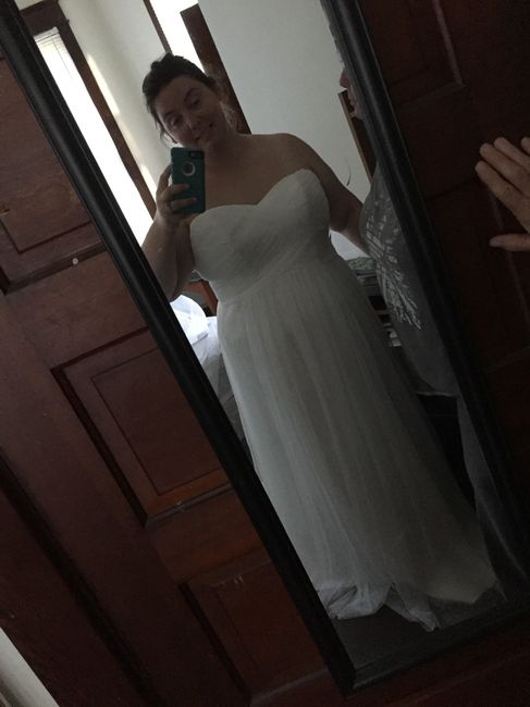 With my dress! Eeek Had mom bring it over to try it on tonight to see what it looked like without all the slips and uncomfortable things they put you at the store. Love it more now. Looks better now than before. Excuse the face. Don't try and talk...