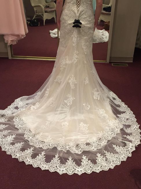 I'm curious if anyone has this dress. I pick it up tomorrow and I'm a little nervous now that my date is so close. Im still in love with it but would love to see it on a real bride and not the model. Thanks everyone!