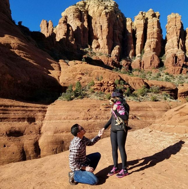 Hi everyone!! I'm beyond excited to be part of the wedding wire community. My FH and I have been together for 5 years. We both graduated this year -2016- and ready to tie the knot. He popped the question a week after my graduation in Sedona, AZ it...