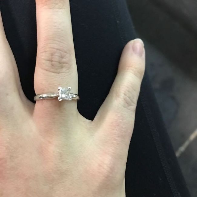 My FH proposed in Paris during a trip in January, and he had planned a custom ring, but unfortunately it would not have been ready by the time we left for trip. So in the meantime he got a small .10 carat ring just because he didn't want to NOT...