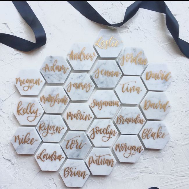 Just wanted to post and show off my wedding favors! I am so excited they are all done and assembled! We used tiles of Marble to be cut into the shapes of cutting/serving boards and the hole is in the shape of a "B" to resemble our last name in a...