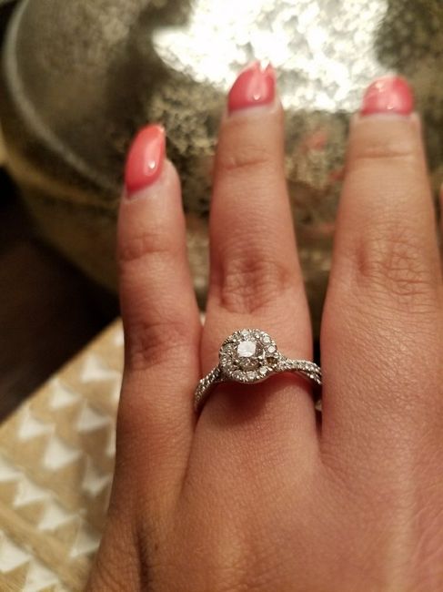 A couple weeks after my fiancé proposed I went to a jewelers with my best friend to get our rings cleaned. When we got our rings back the jeweler notice a stone was missing from my halo, he went to check the machine and it was there. I had them reset...