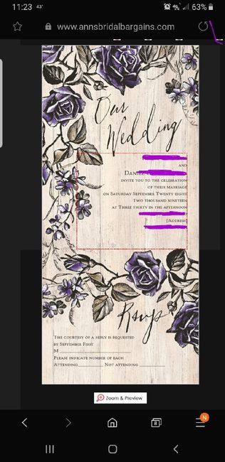 Ordered my wedding invitations from Ann's Bridal Bargains last week and got them in today. I am overall very pleased with them. I thought our names would be a darker brown than they are, but that's no big deal! A great way to save money.......