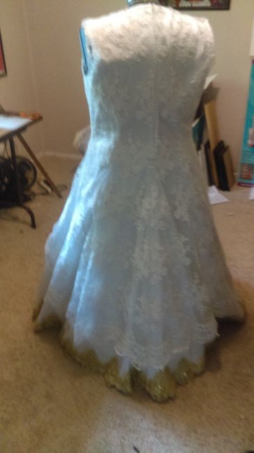 I've been working really hard on my wedding dress for this October, and I wanted to share my progress! In all actuality I'm done (for now) and will finish the final hem and zipper when I finish losing weight by my last fitting. (Down 13 pounds since...