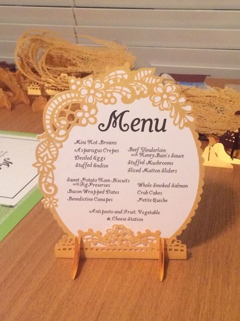 OMG! I am within single digits of my wedding. I also am drowning in DIY projects because I wanted to justify the cost of a Cricut Explore I bought during Amazon prime day. The picture below is of my table menus and ceremony programs. The white parts...