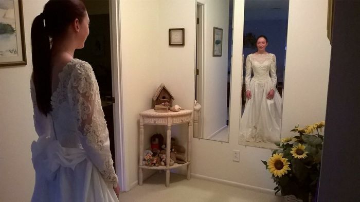 I finally made up my mind and said yes to the dress! It's hard when you're in the middle of losing weight to be happy with the way you look in your wedding dress and finally pick one. Let me see your dresses!