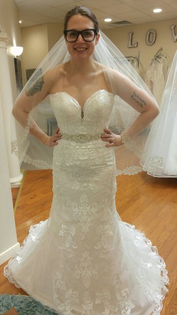 I'm so excited I seriously can't wait!!! I love it, it's so beautiful. I'm inviting my future mother in law so she can see it in person for the first time. It's a Stella York I got at a trunk show. I've lost weight so we'll see how much I'll have to...