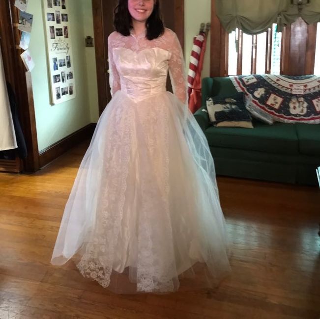 I just received my dress and I'm so excited ( even though you can't tell from my expression) to be marrying my soulmate. Lets see those dresses. Still looking for jewelry but working on it. Back of dress in comments.