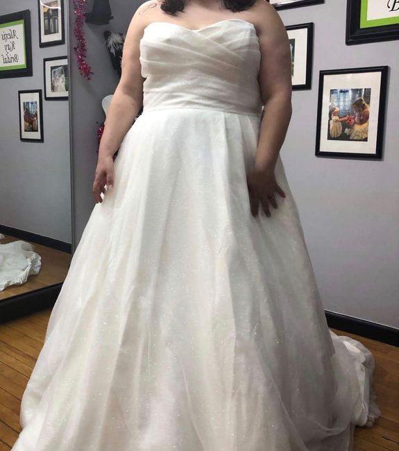 I went in today for my final fitting before the wedding in two weeks... they had the bustle set to be the first photo.... which we thought looked absolutely awful. You could see the buttons going across even with my train out. They said, no one will...