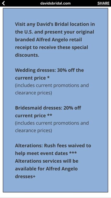 Saw this posted and I wanted to share for any brides that were affected by Alfred Angelo closing. I dont know if you've seen this from David's Bridal, but... "We are aware that wedding dress retailer Alfred Angelo Bridal has closed most if not all of...
