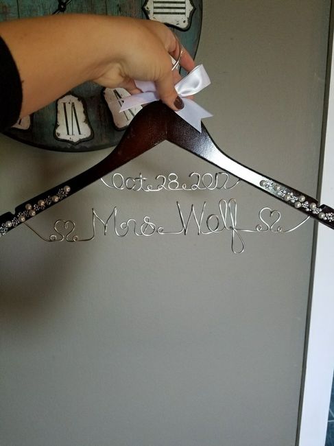 It finally came in! My hanger for the wedding dress. It just hit me as I opened it up....99 days left! This is actually happening just had to share. Has anyone else done a personalized hanger?