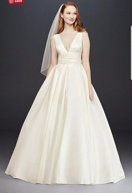 I had purchases my wedding dress for the second time(first one was exchanged because I quickly realized I didn't feel suppprted/comfortable in a strapless). It's simple...almost a long Marilyn Monroe style...while it gets comfortable when I tried it...